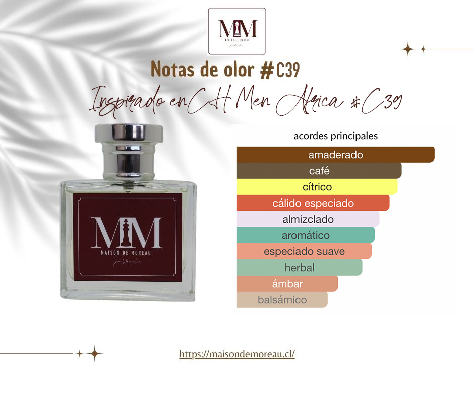 CH Men Africa de Carolina Herrera es una fragancia de la familia olfativa Amaderada Especiada para Hombres. CH Men Africa se lanzó en 2015. Las Notas de Salida son mandarina y pimienta rosa; las Notas de Corazón son salvia azul y pimiento morrón; las Notas de Fondo son café, madera de cachemira y cedro del Atlas.
